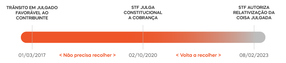 Conforme decidido pelo STF, o contribuinte que goza de uma decisão judicial transitada em julgado, permitindo o não pagamento de um tributo, perde automaticamente o seu direito diante de um novo entendimento do STF que considere a cobrança válida.